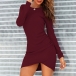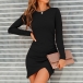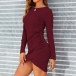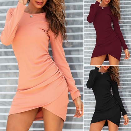 Fashion Solid Color Long Sleeve Round Neck Irregular Hem Slim Fit Dress