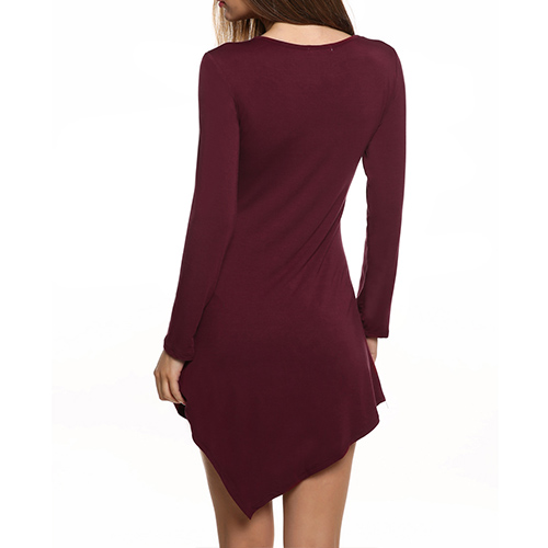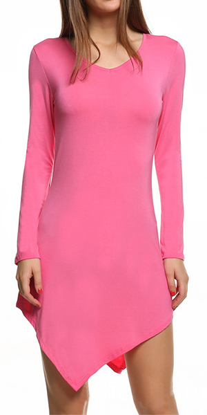 irregular hem,chic and stylish. Adding a contrast color necklace would be more glamorous.