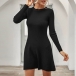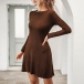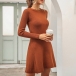 Fashion Solid Color Long Sleeve Round Neck Knit Dress