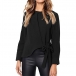 This t-shirt comes with the classic yet flattering black tone,crafted from soft and breathable fabric,with long sleeve and round neck design,which can ensure you a comfortable day. What's more,the knotted hem design will make this piece look more stylish and attractive. Try to match with your favourite pants to start your wonderful day.