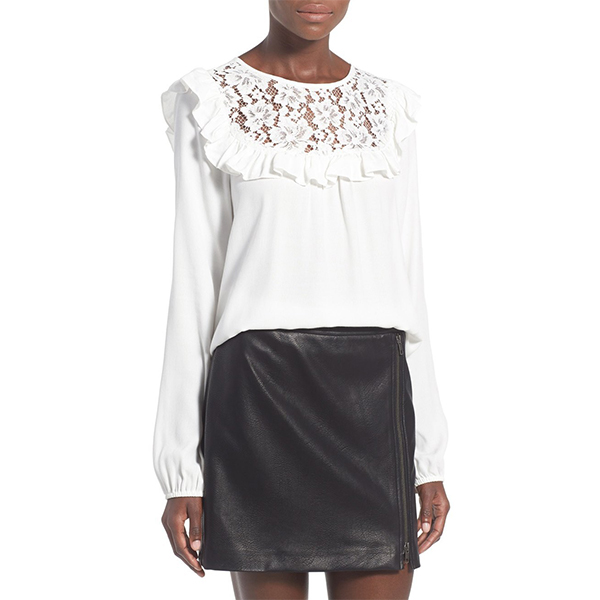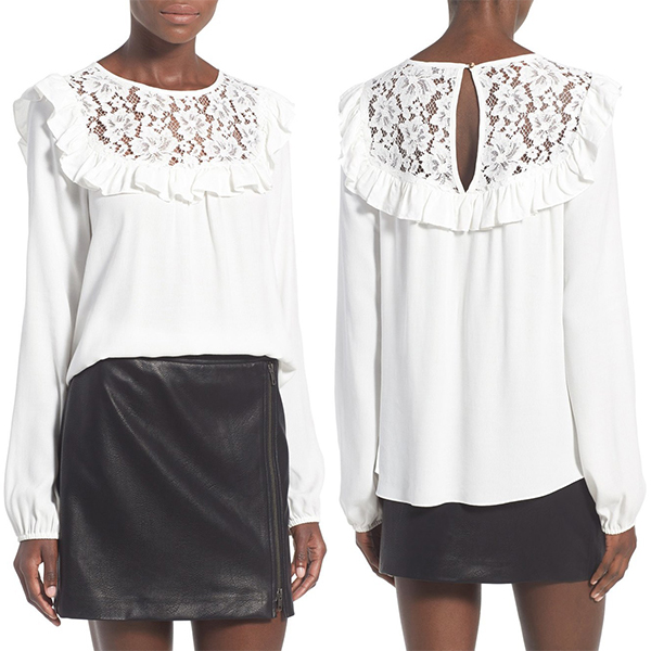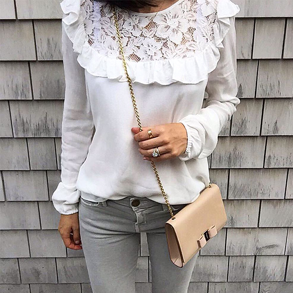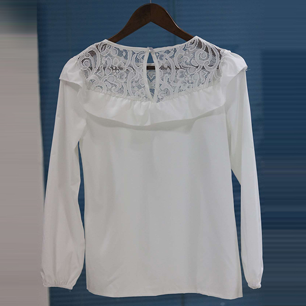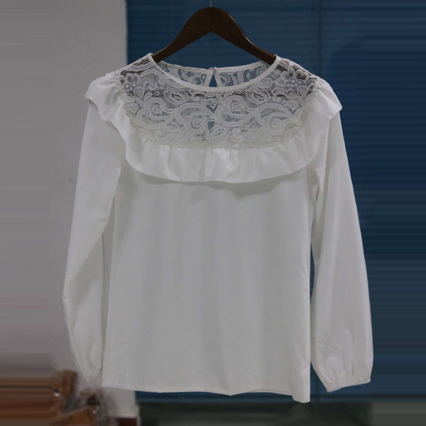 round neck,ruffle and lace spliced details,chic,stylish and feminine. No matter matching it with your shorts,skirts or pants,