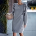For some rushed mornings,you can just slip into this dress to start your busy and wonderful day. Solid color style,the lace spliced ruffle design at the shoulder part will enrich the design style. Finished with long sleeve,round neck and a loose silhouette,this dress also can ensure you a comfortable day.
