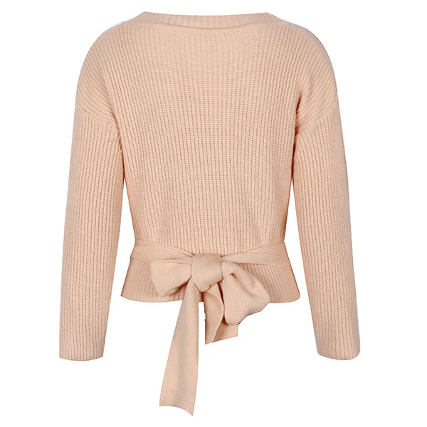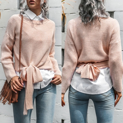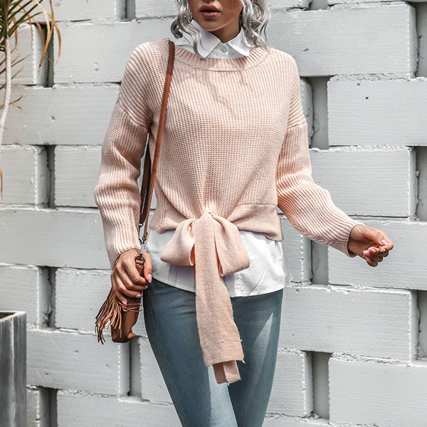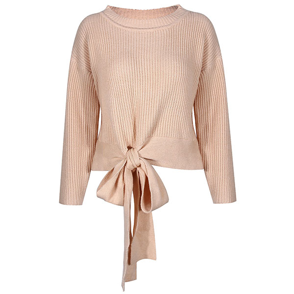 When the days get a little cold,this knit top can easily strike your mind. Comes with a solid color,finished with long sleeve and round neck design,this piece can ensure you a warm and comfortable day. Moreover,the lace-up hem design will make this piece look more attractive. You can match with a shirt underneath to achieve for a fashionable look.