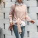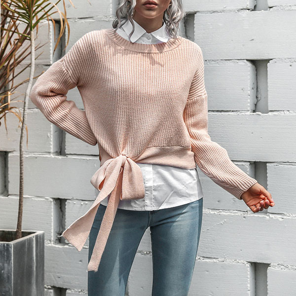 Fashion Solid Color Long Sleeve Round Neck Lace-up Hem KKnit Top
