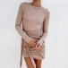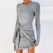 Fashion Solid Color Long Sleeve Round Neck Lace-up Knotted Dress