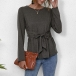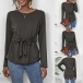 Fashion Solid Color Long Sleeve Round Neck Lace-up T-shirt