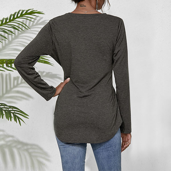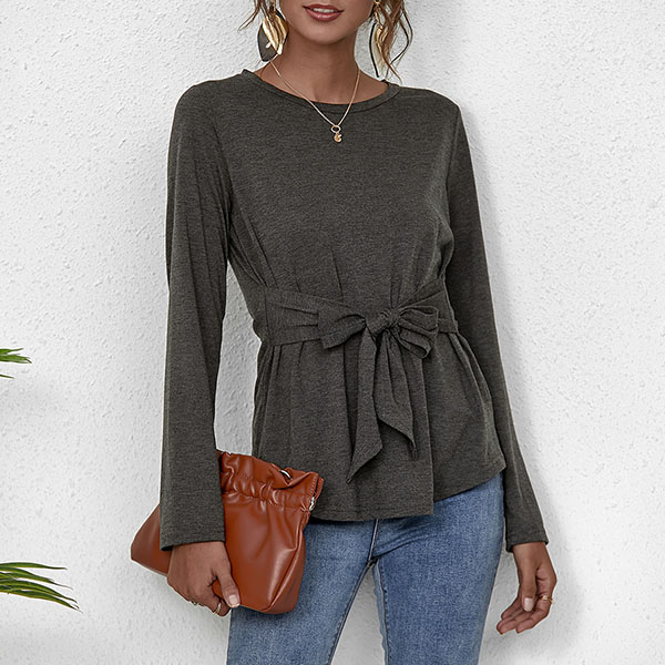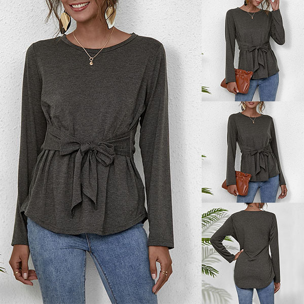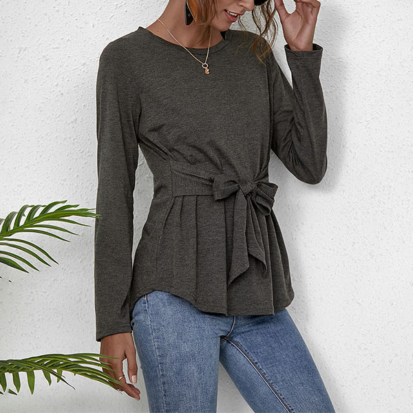 If you are looking for a chic and unique t-shirt,then how about this piece? Boasts a solid color,with long sleeve and round neck design,simple,classic yet cozy. What's more,the lace-up design at the waist part will make this piece look more attractive. So why not take interest in it?