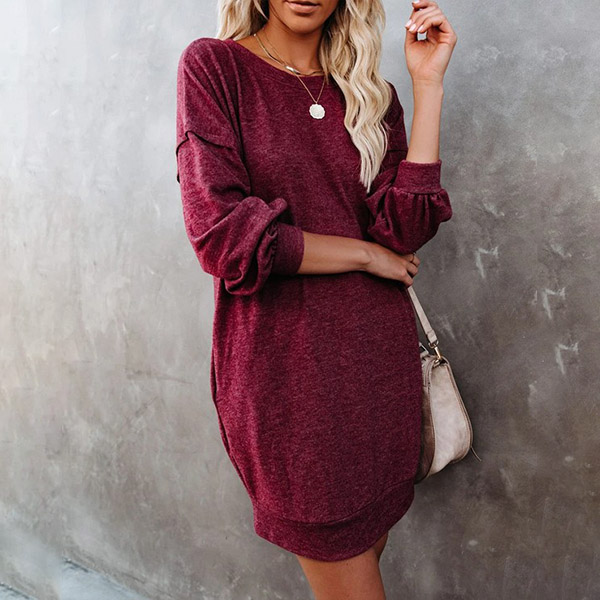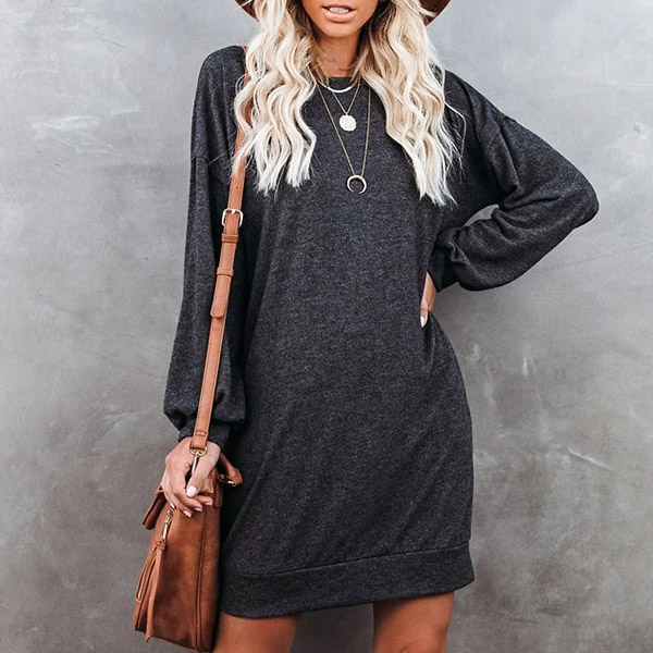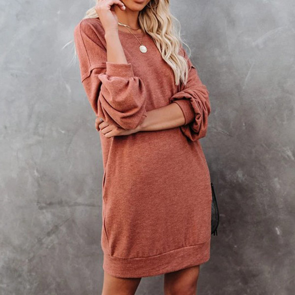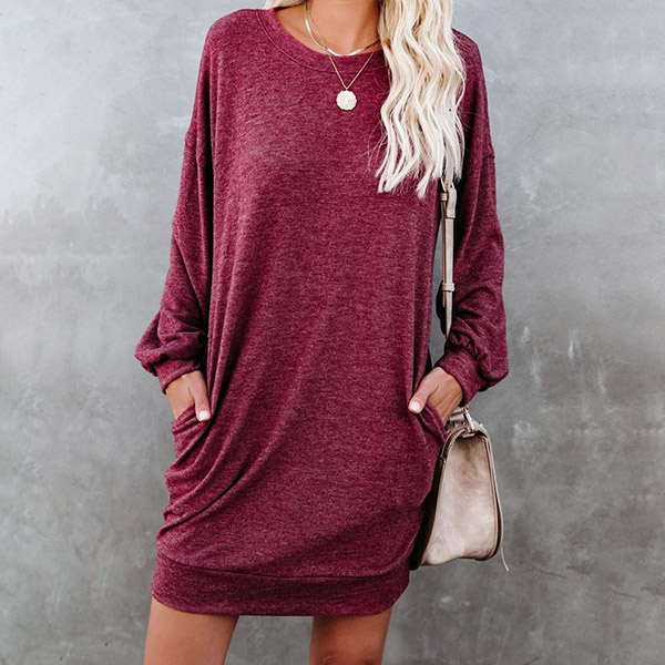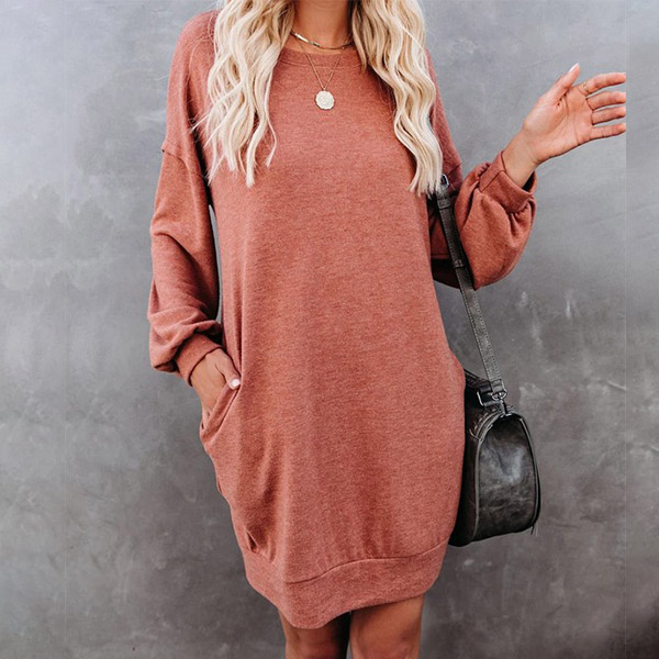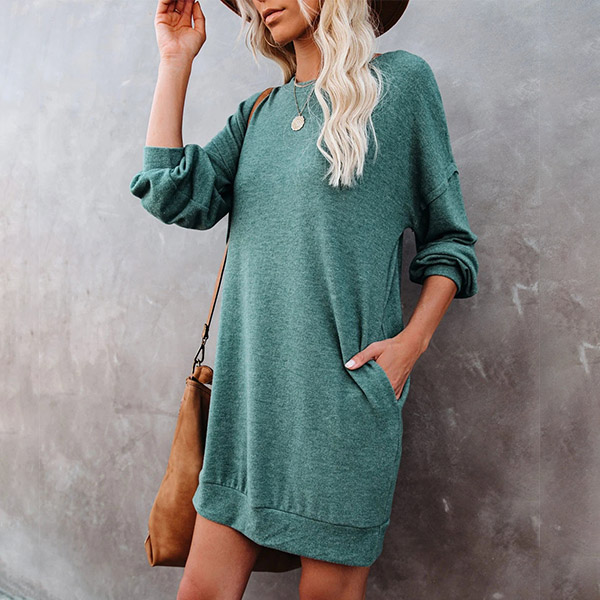 For your daily strolling,this easy-to-wear dress would be your wise choice. Solid color style,finished with long sleeve,round neck and a loose silhouette,this dress definitely knows how to give you a cozy yet stylish style. So why not invite this piece to your casual wardrobe ensemble?