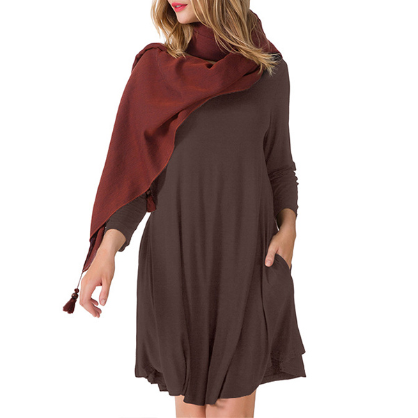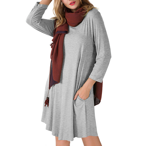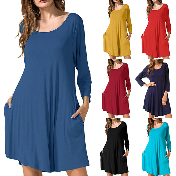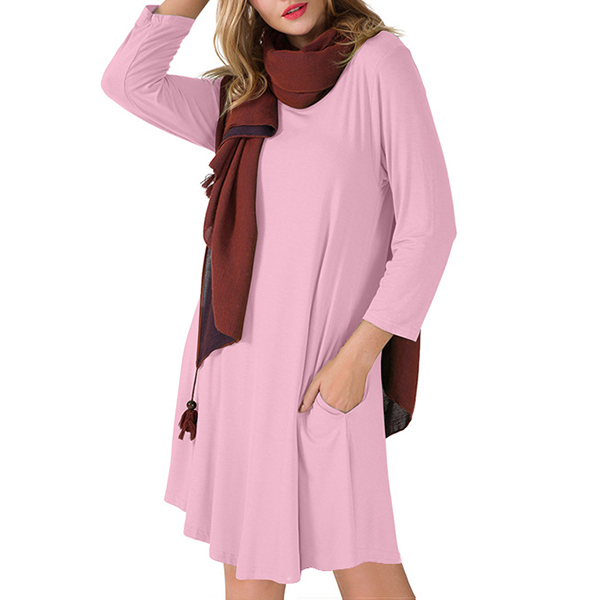 For your daily out,you can just slip into this dress to start your wonderful day. Boasts a solid color,finished with long sleeve,round neck and a loose silhouette,this dress can give you an utmost comfort while it maintains the style. Different colors for your optional.