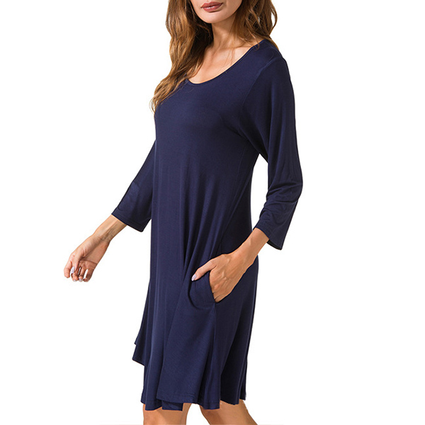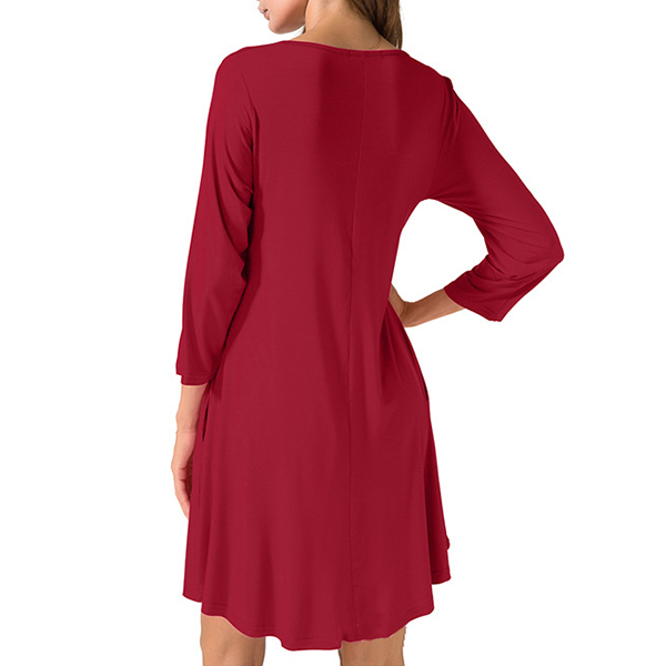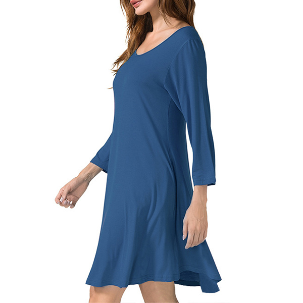 Fashion Solid Color Long Sleeve Round Neck Loose Dress