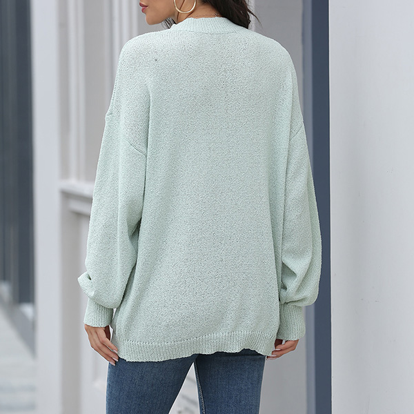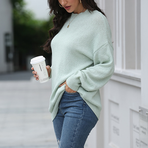 Fashion Solid Color Long Sleeve Round Neck Loose Knit Top