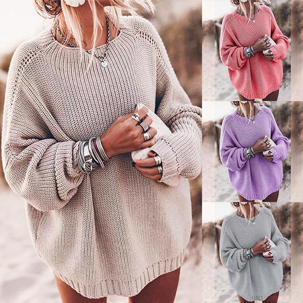 When the cold days hit,you can slip into this sweater to have a warm day. Solid color style,finished with long sleeve,round neck and a loose silhouette,this sweater can make you look stylish when matching with a tight pants. Of course adding a sparkle sweater necklace would make you look more beautiful.