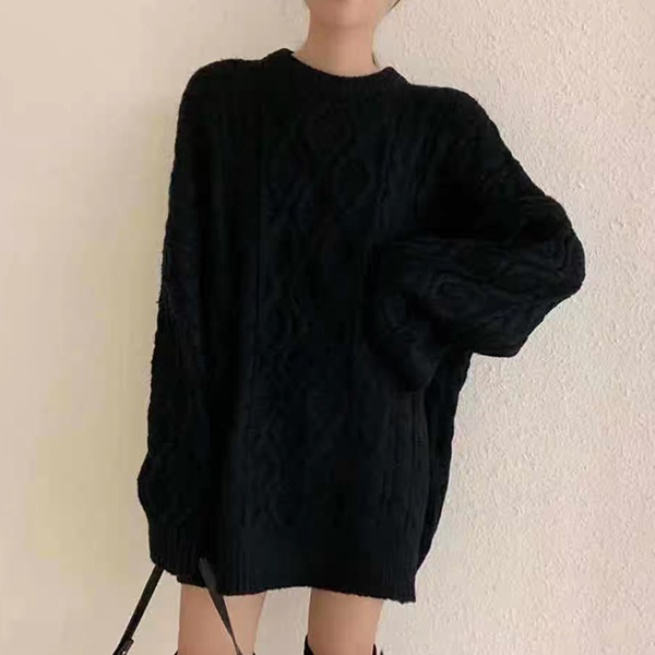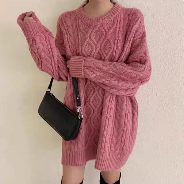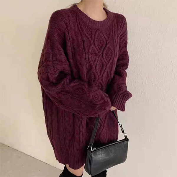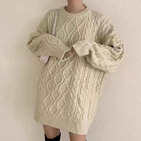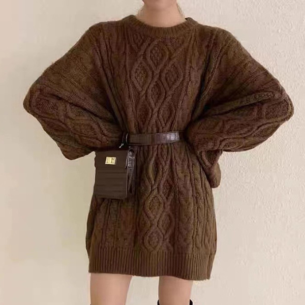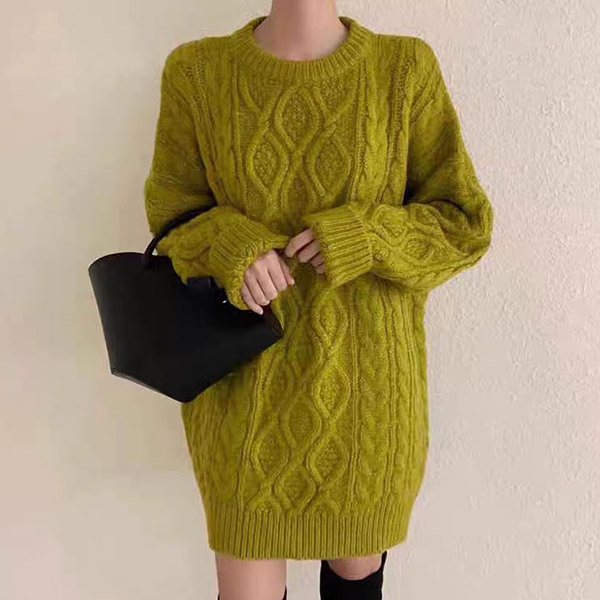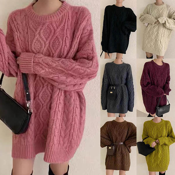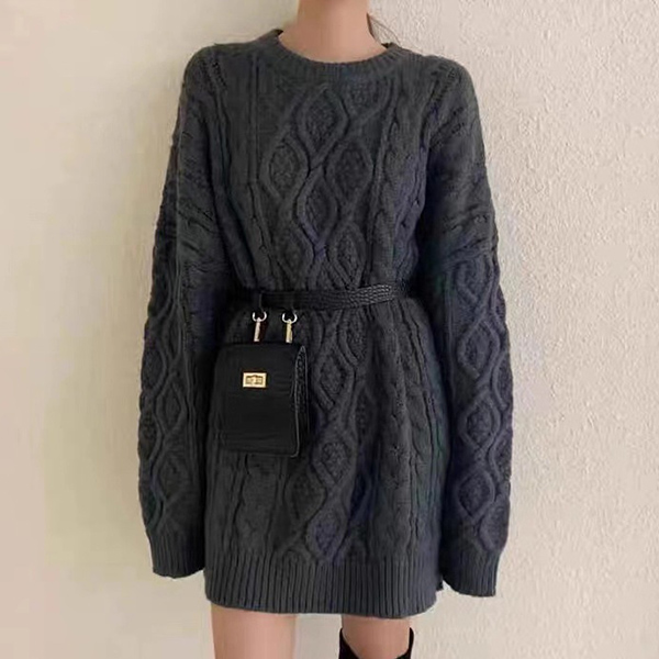 Your wardrobe calls for such a simple,cozy yet stylish sweater dress. It comes with a solid color,finished with long sleeve,round neck and a loose silhouette,this sweater dress can keep you warm. Matching with your over-the-knee boots and thin waistband would offer you a more charming look!