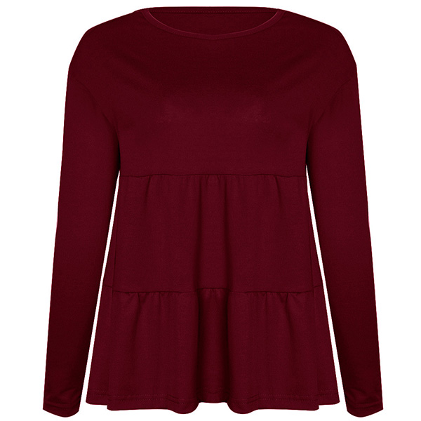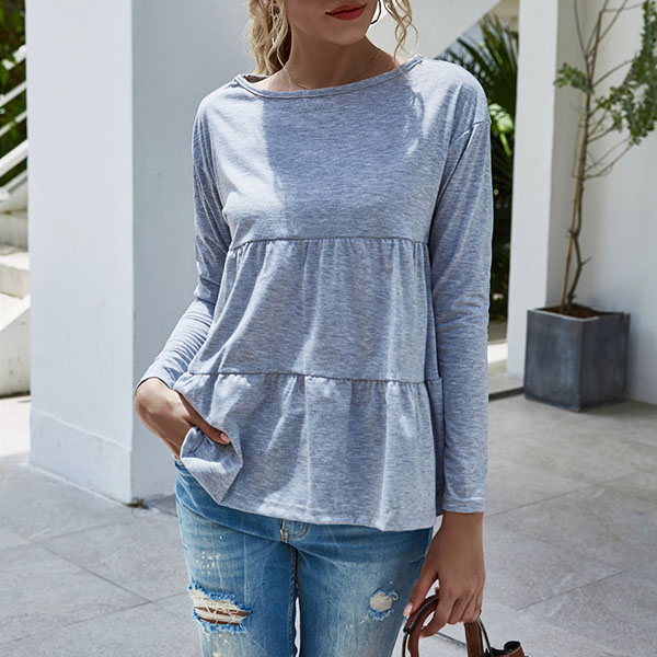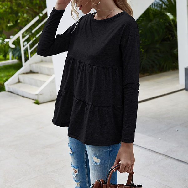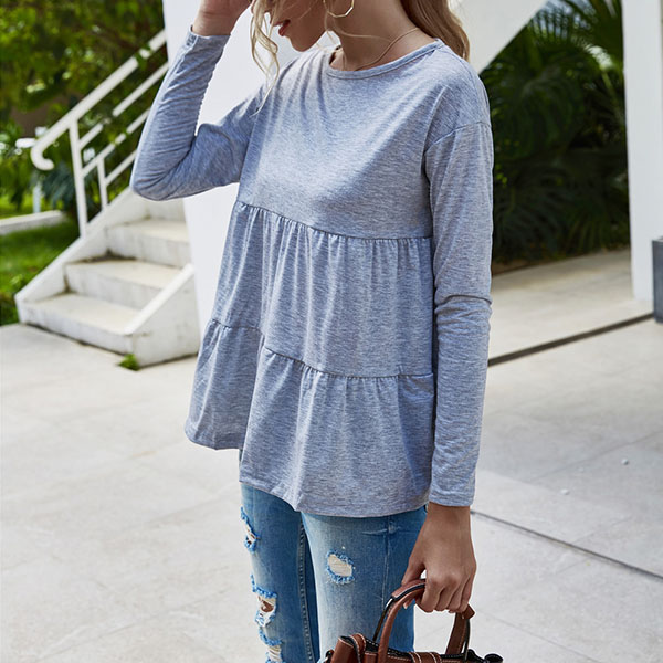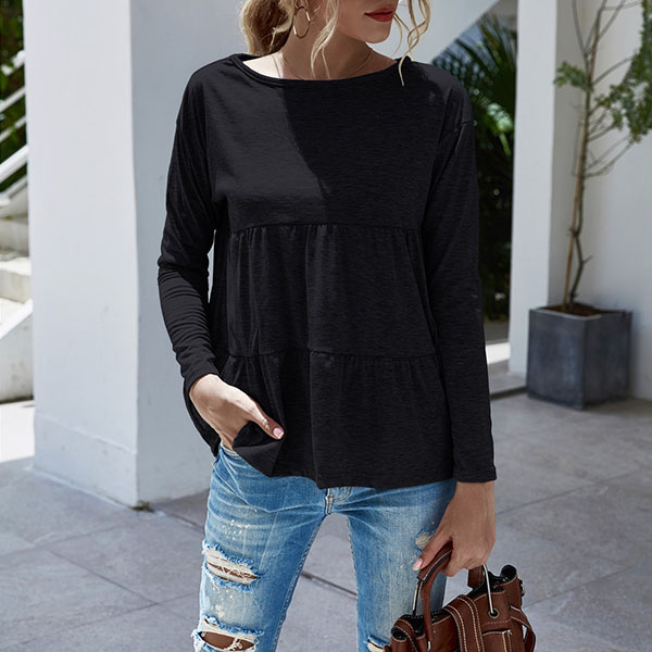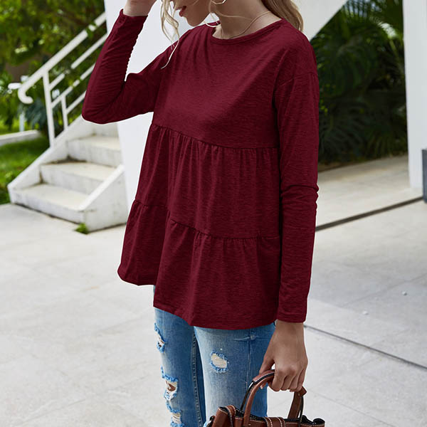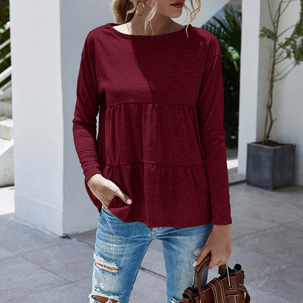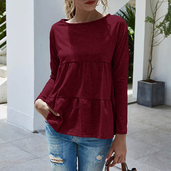 Fashion Solid Color Long Sleeve Round Neck Loose T-shirt