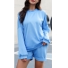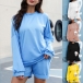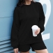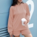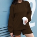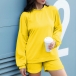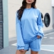Fashion Solid Color Long Sleeve Round Neck Loose Top + Shorts Sports Suit