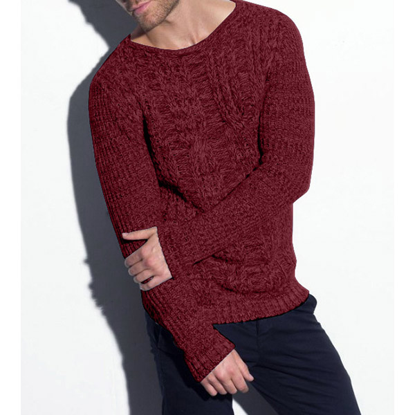 Fashion Solid Color Long Sleeve Round Neck Man's Sweater