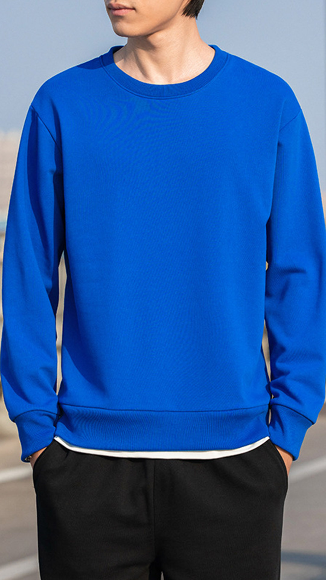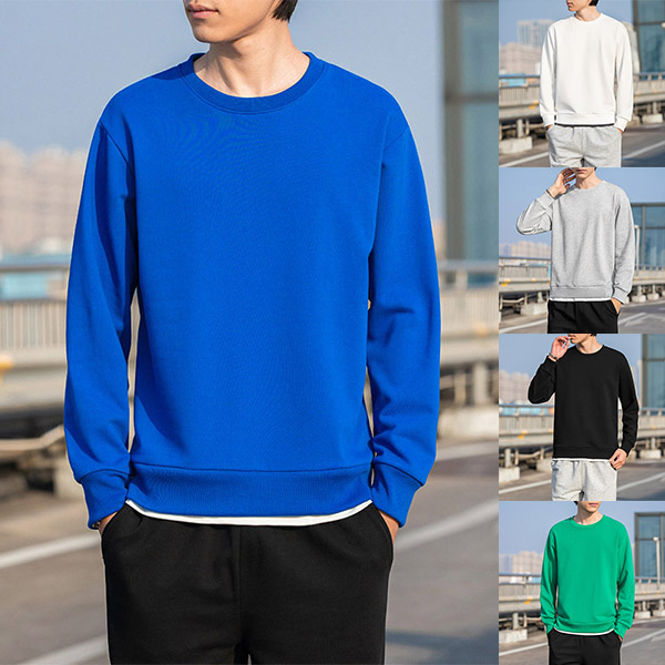Fashion Solid Color Long Sleeve Round Neck Men's T-shirt