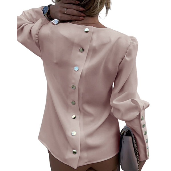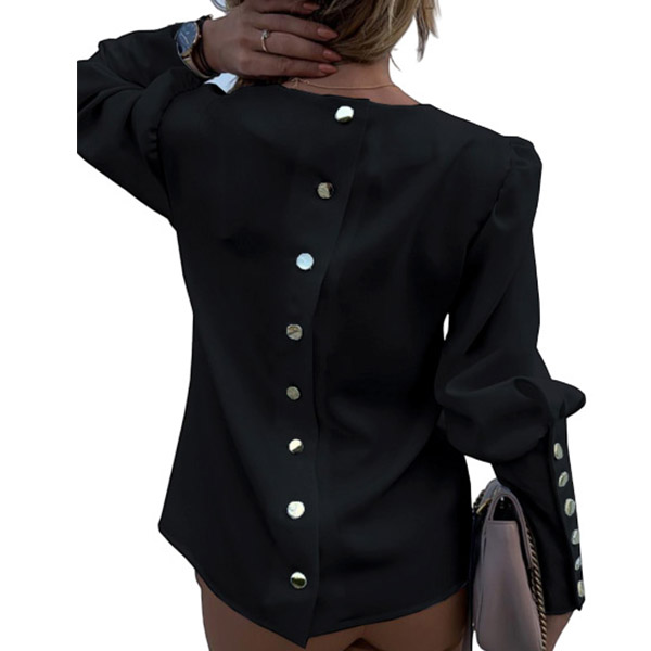 Fashion Solid Color Long Sleeve Round Neck Metal Button Top