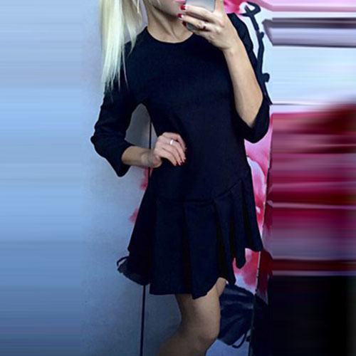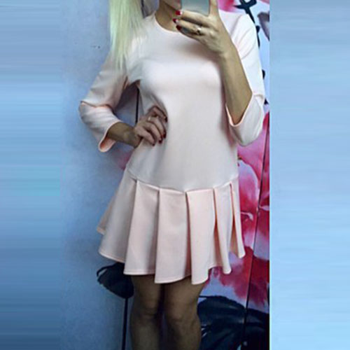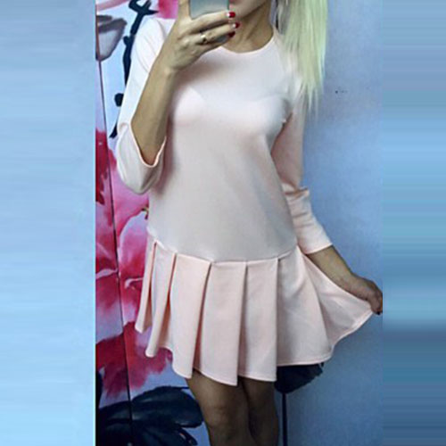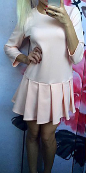 with long sleeves,round neck and pleated hem design,refined and classic. We suggest adding a