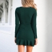 Fashion Solid Color Long Sleeve Round Neck Ruffle Hem Dress