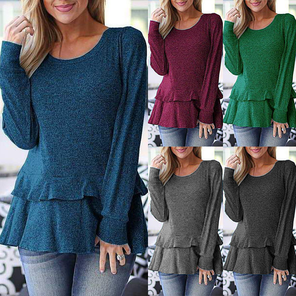 This t-shirt boasts a solid color,crafted from soft and breathable fabric,with long sleeve and round neck design,which can offer you a comfortable day. Moreover,the ruffle hem design will make this piece look more attractive. It is perfect fit for your lazy days and casual weekends.
