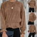 Comes with a solid color,crafted from soft and breathable fabric,with long sleeve and round neck design,this wonderful top knows how to give you a cozy yet stylish style. What's more,the ruffle hem design can lend you a dash of sweet vibes. We suggest you matching with a tight pants to start your wonderful day!