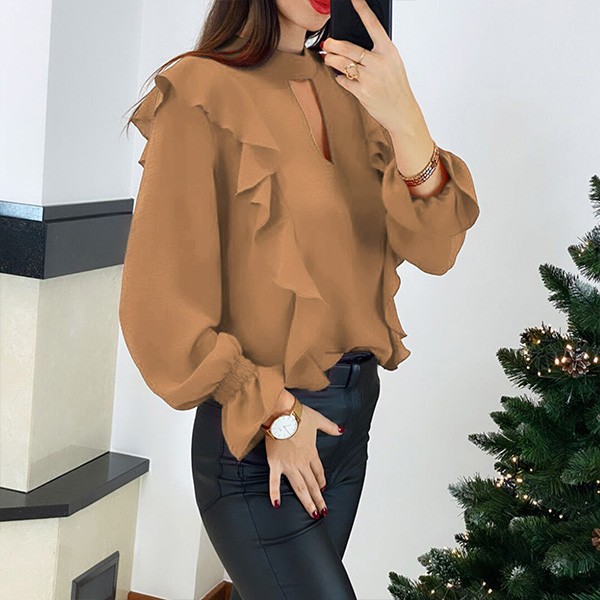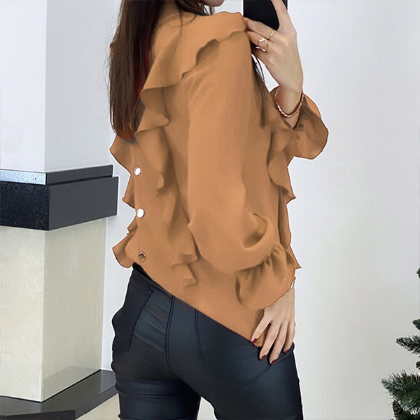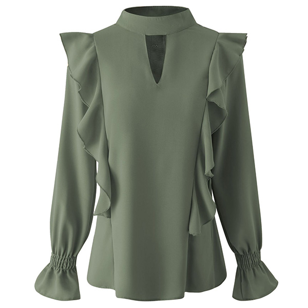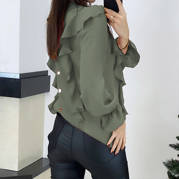 Fashion Solid Color Long Sleeve Round Neck Ruffle Top