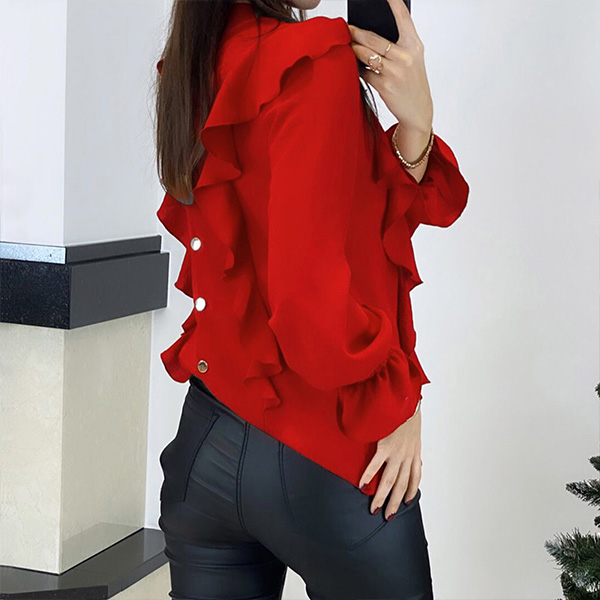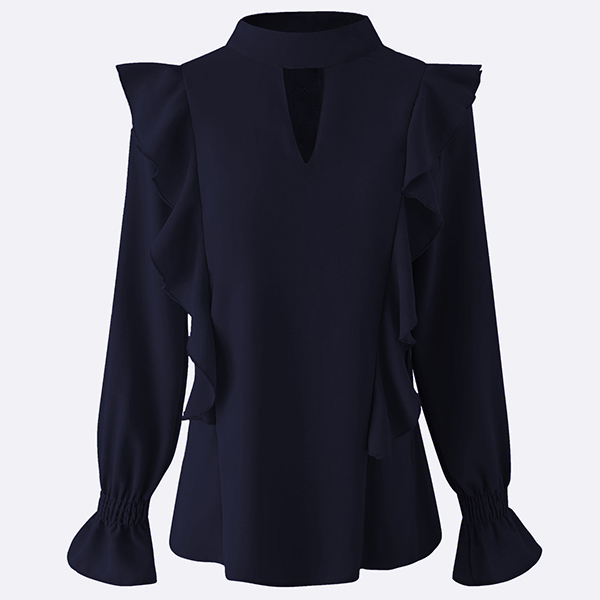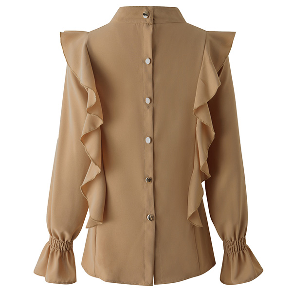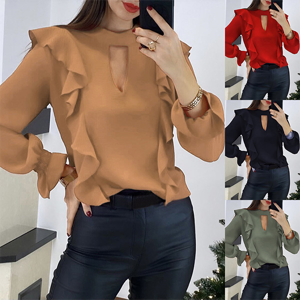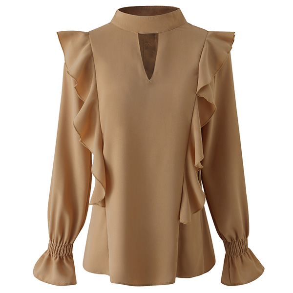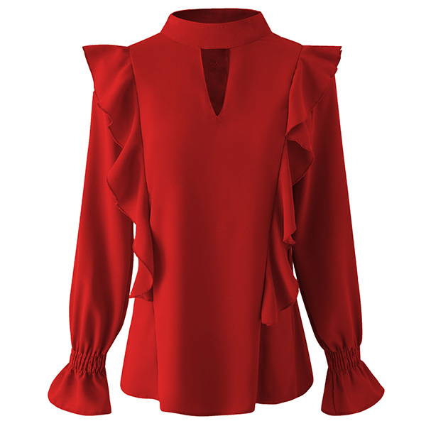 Bright up your day with this wonderful top. Crafted in a solid color,with long sleeve and round neck design,this piece can offer you different fashion styles by teaming with different style bottoms. And the ruffle design will inject some sweet and stylish vibes to your look. Like it? Then buy one!