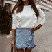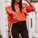 Only need one glance,you would be attracted by this wonderful top. It features a solid color,finished with long sleeve and round neck design,simple,classic yet stylish. Then what makes this piece look so distinctive? It owes to the ruffle design. You can match it with your favourite pants to start your day!