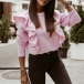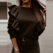 Fashion Solid Color Long Sleeve Round Neck Ruffle Top