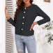 As for a sweet and stylish daily look,you can just slip into this wonderful top. Comes with a solid color,finished with long sleeve and round neck design,this piece can offer you different fashion styles by teaming with different style bottoms. What's more,the ruffle and button details at the front side will further enhance its charm. Like it? Then buy one!