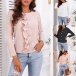 Fashion Solid Color Long Sleeve Round Neck Ruffle Top Blouse