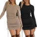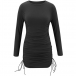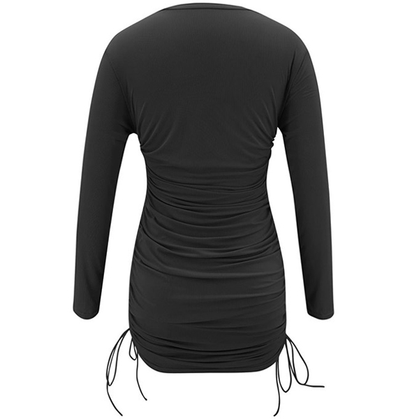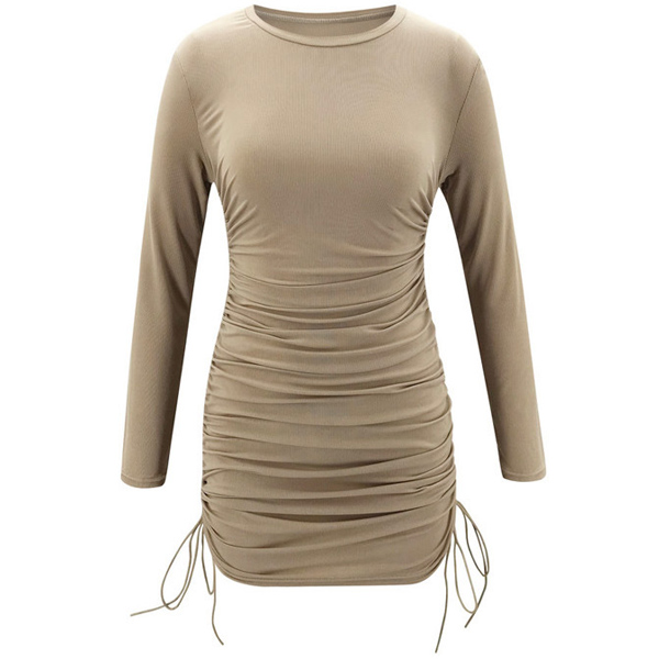 Fashion Solid Color Long Sleeve Round Neck Side-drawstring Slim Fit Dress