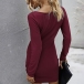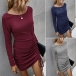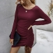Fashion Solid Color Long Sleeve Round Neck Side-drawstring Slim Fit Dress