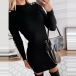 Fashion Solid Color Long Sleeve Round Neck Slim Fit Knit Dress