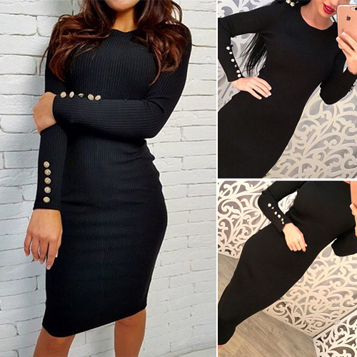 example this knit dress. Boasts a solid color,with long sleeve,round neck and a fit silhouette,simple yet cozy and stylish.