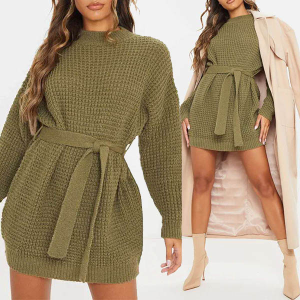 For these chilly winter days,this cozy yet stylish sweater dress would be your wardrobe staple. Solid color style,finished with long sleeve and round neck design,this sweater dress can keep you warm and stylish. What's more,the waist strap design can make this this piece more attractive.