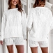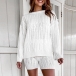 When you have no time to do your daily matching,then this two-piece set can easily strike your mind. Solid color style,including a long sleeve round neck sweater and a high waist knit shorts,this two-piece set is a good weapon to exude your style and personality.