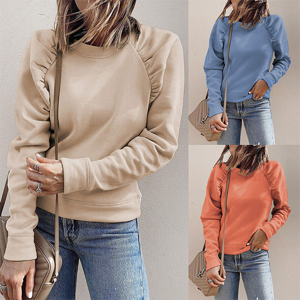 Fashion Solid Color Long Sleeve Round Neck Sweatshirt