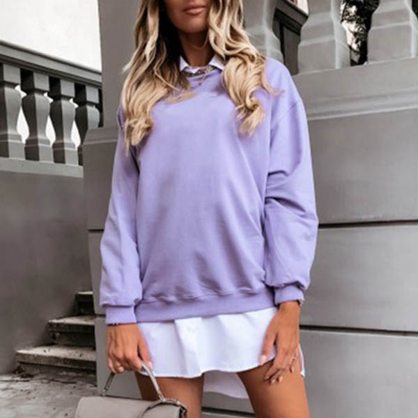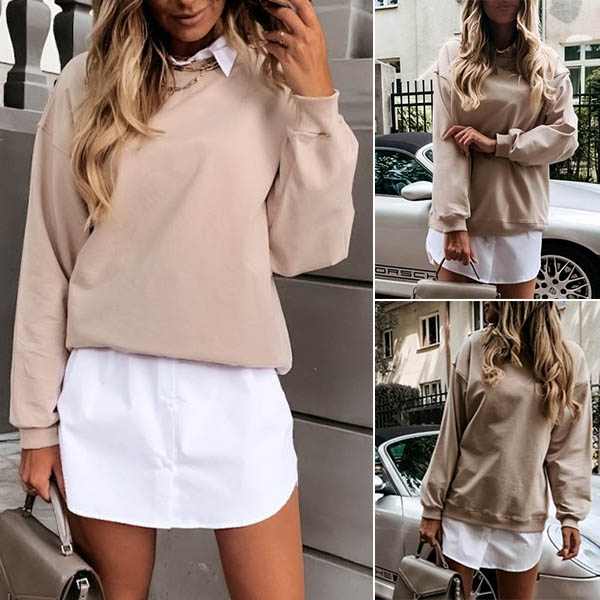 As for a simple,laid-back yet stylish autumn look,you can have a try this sweatshirt. Solid color style,finished with long sleeve and round neck design,this piece bears a simple,classic design style. Moreover,it allows to be matched with different style bottoms like shorts,skirts,jeans and so on.