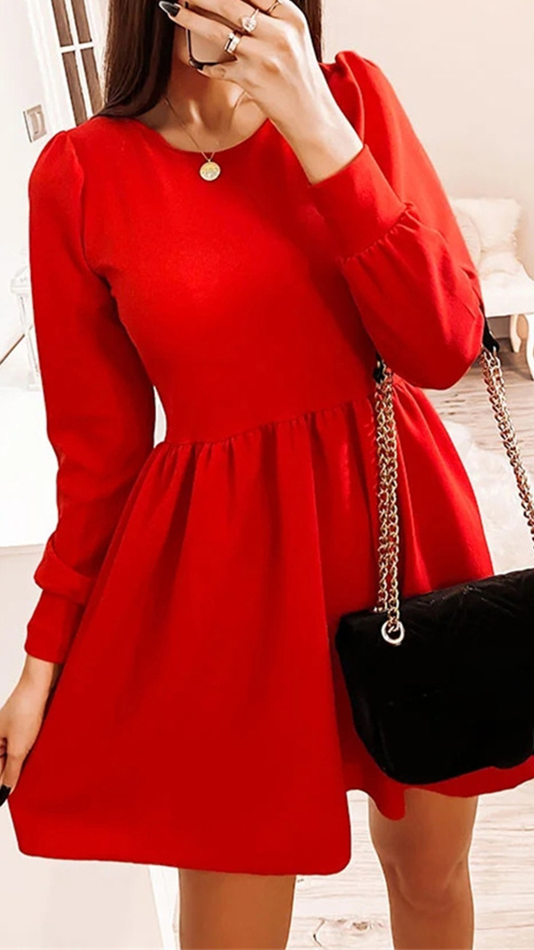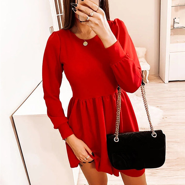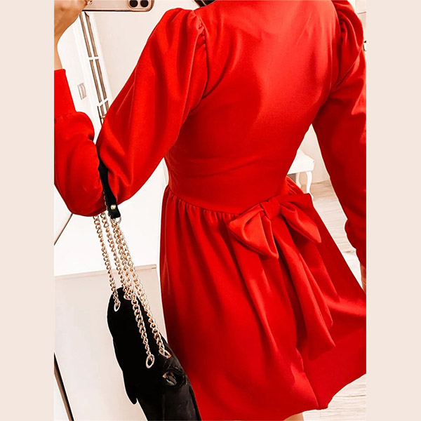 This dress comes with a bright red tone,which can make you be an eye-catching sight. And the strap design at the waist part allows you make a bow-knot at the backside to add some sweet vibes. Finished with long sleeve and round neck design,this dress definitely knows how to give you a cozy yet stylish daily style.