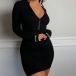 Fashion Solid Color Long Sleeve Round Neck Tight Dress