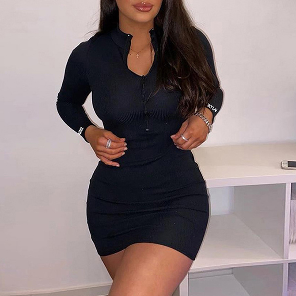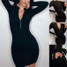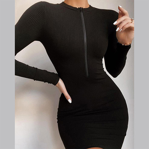 One of the easiest way to cultivate your slender figure is through a tight dress. So how about this piece? Boasts a classic yet flattering black tone,with long sleeve,round neck and a tight silhouette,this dress also can exude your flirty sense and charming feminine appeal. Save this wonderful dress for your fancy events.
