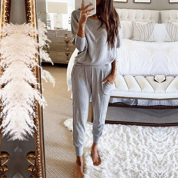 No matter for your casual weekends and sports time,this two-piece set can be your wise choice. Solid color style,including a long sleeve round neck top and a pants,this two-piece set bears a simple design style,but it knows how to give you a comfortable day. You can enrich your wardrobe with this two-piece set!