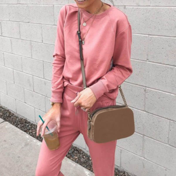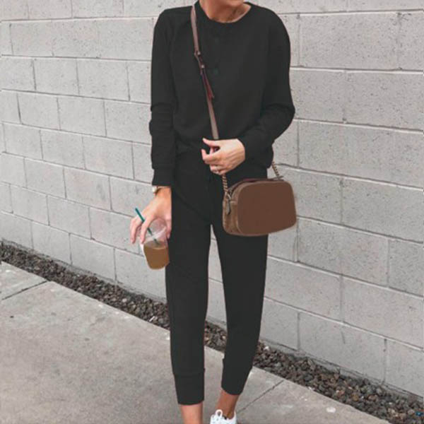 When you have no time to think about what to wear,then this two-piece set can be a perfect solution. Solid color style,including a long sleeve round neck top and a pants,crafted from soft and breathable fabric,this two-piece set can give you an utmost comfort. It is perfect fit for your home time and casual days.