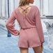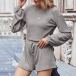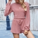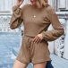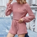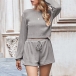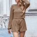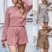 Fashion Solid Color Long Sleeve Round Neck Top + Shorts Two-piece Set