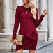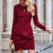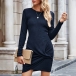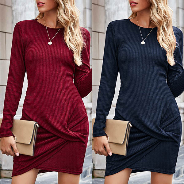 Fashion Solid Color Long Sleeve Round Neck Twisted Hem Slim Fit Dress
