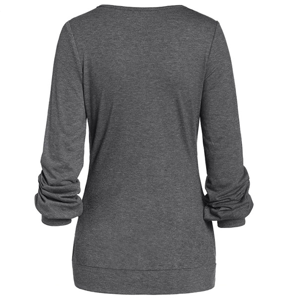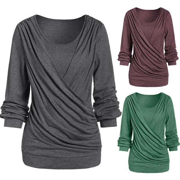 Not only can keep you cozy,but also can bring you more style,that's why we suggest you this t-shirt! Comes with a solid color,the wrinkled details are the highlights,which make this piece look so chic and distinctive. Like it? Then add it to your wardrobe!