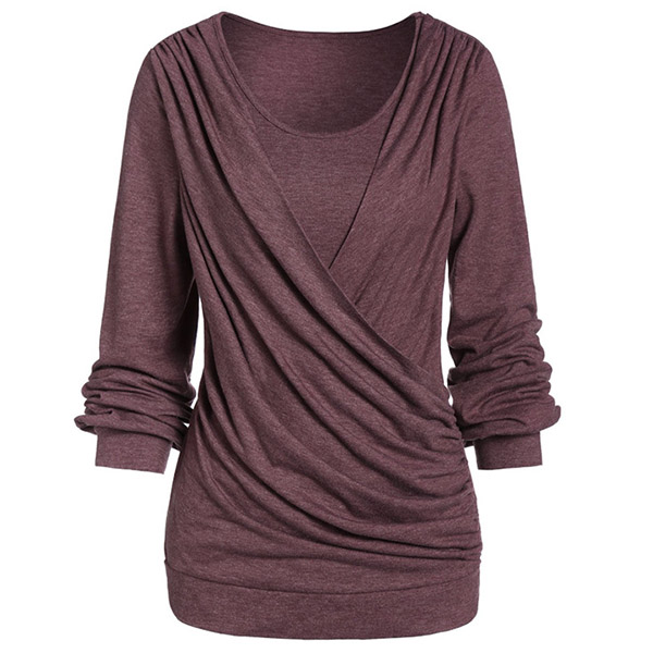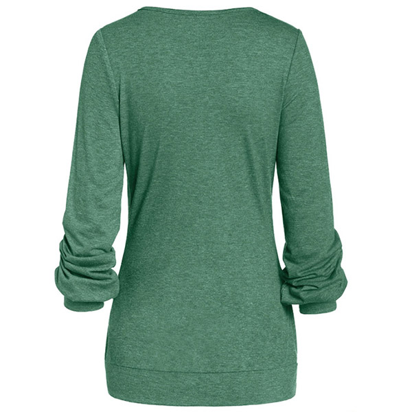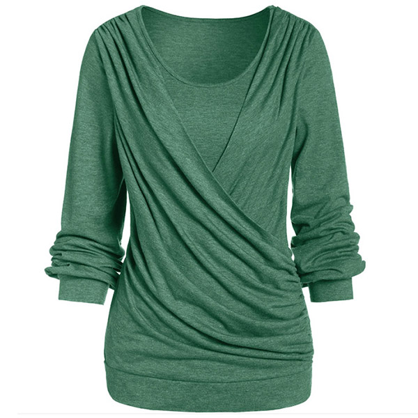 Fashion Solid Color Long Sleeve Round Neck Wrinkled T-shirt
