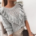 Fashion Solid Color Long Sleeve Ruffle Hollow Out Knit Top